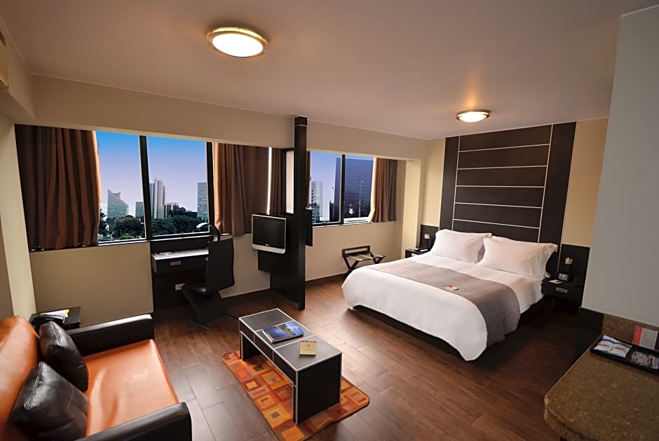 +1 (888) 385-8465Welcome to qp Hotels Lima, a fantastic 4-star hotel located at Av. Jorge Chavez 206, just 5,4μίλ. from the vibrant city center of Lima, Peru. The hotel offers a range of amenities for your comfort and enjoyment during your stay. Wake up to a delicious breakfast while taking in the beautiful garden views, and relax in the outdoor swimming pool or sauna. With pet-friendly options available and a fitness center on-site, qp Hotels Lima caters to all guests' needs.